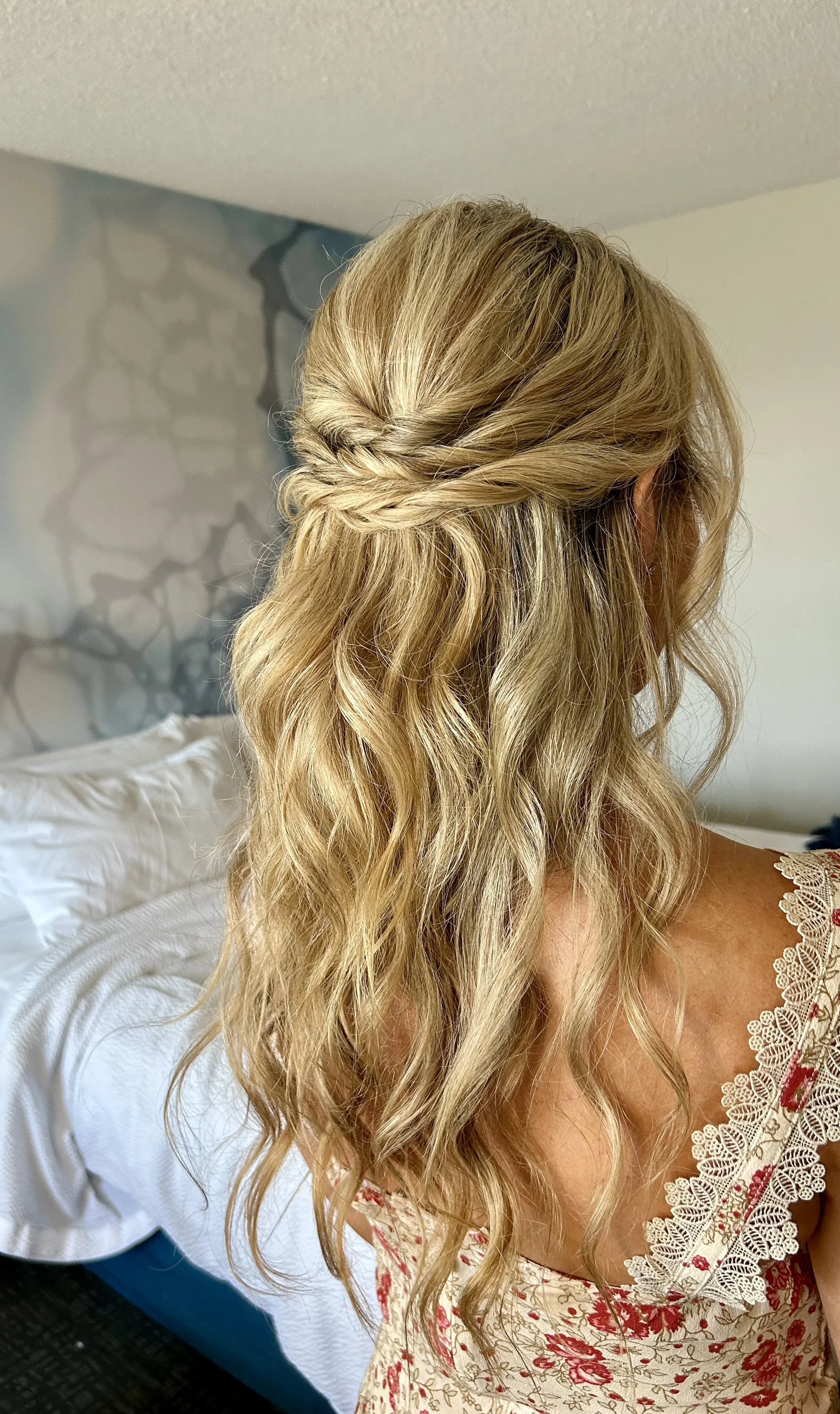 Professional hairstyling customized for your event, hair type and style. Choose from styles like textured ponytails, half-up styles, braided accents, or sleek updos.